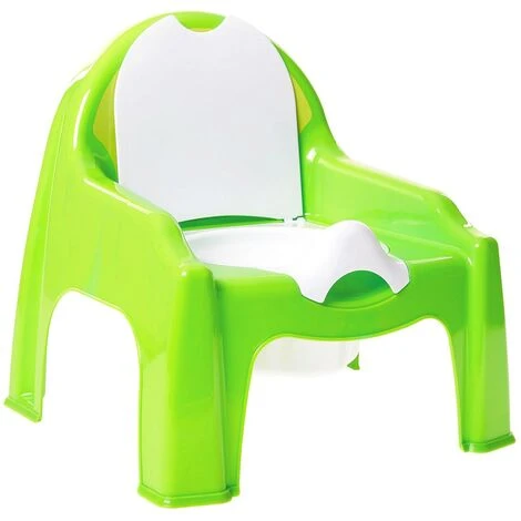 Si presenta come una normalissima sedia in plastica ma al suo interno porta un contenitore con coperchio molto simile ad un wc, il quale può essere rimosso facilmente per la pulizia dopo l’uso.