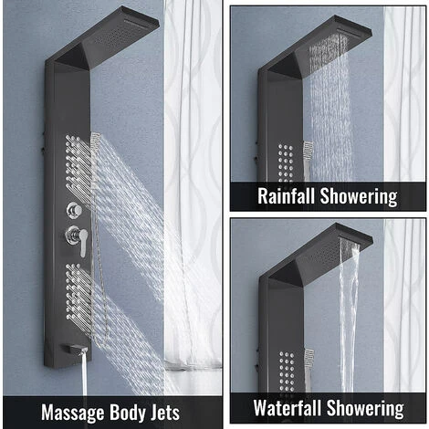 - 【AMPI SCENARI DI UTILIZZO】 – Il colore nero rende questo sistema di pannelli doccia a parete un aspetto di fascia alta nella stanza o nei luoghi commerciali. Adatto per rimodellare il tuo bagno, hotel, resort, appartamenti per migliorare il gusto della stanza e goderti una doccia accogliente dopo una lunga giornata di lavoro.