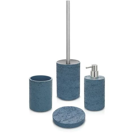 Accessori bagno – set appoggio completo da 4 pezzi linea Matera colore turchese cobalto in resina