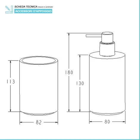 - Dimensioni portaspazzolini: H 11.3 x ø 8.2 cm;