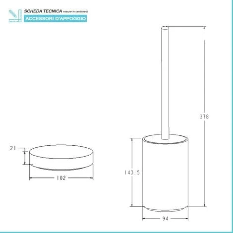 - Dimensioni portascopino: H 37,8 x ø 9,4 cm;