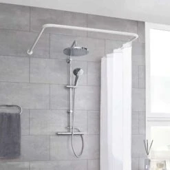 Bastone Per Tenda Doccia Curvo Universale Aste 90×90 Cm Bianco Asta Per Tende Arredo Bagno