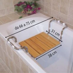 Sedile Doccia A Muro Pieghevole 30 X 35 Struttura In Acciaio E Seduta In Legno Massello.