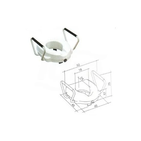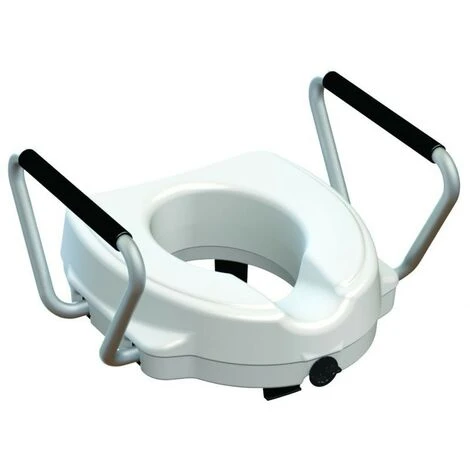 Alzawater con braccioli. Alza wc con braccioli . Rialzo per wc con braccioli. Easy safe . Con sistema di bloccaggio con vite nylon anteriore h cm 12.5. Progettato per chi ha difficolta a alzarsi e a sedersi sul wc . Si blocca facilmente sul wc e si ottiene un rialzo di 12 cm resistenza max 130 kg. E’ dotato di braccioli in alluminio rivestiti in neoprene fissi . Apertura frontale per una migliore accessibilita’