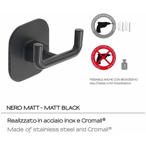 APPENDIABITI TIMO DOPPIO IN ACCIAIO INOX NERO OPACO DA PARETE