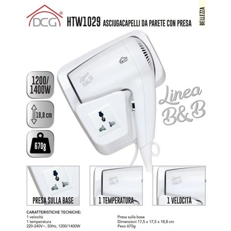 - Asciugacapelli da parete 1200/1400 watt