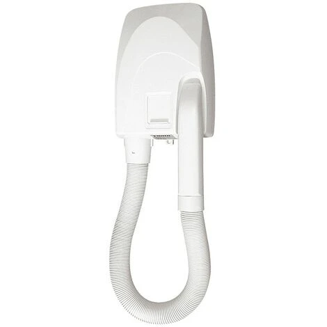 Asciugacapelli phon a parete bianco con tubo flessibile e presa rasoio dotato di 3 velocità