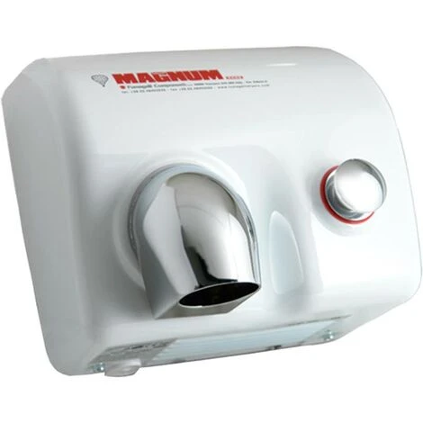 Asciugamani elettrico ad aria calda ad elevate prestazioni, Fumagalli Magnum MG88P EP LEM 450, a pulsante ed ingombro ridotto con azionamento a pulsante, munito di bocchetta erogazione aria orientabile (versione opzionale con bocchetta fissa).