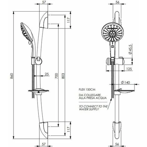 L’asta saliscendi doccia è realizzata in acciaio inox con supporto in ABS con colore cromo brillante.
