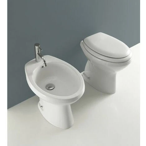 - il bidet a terra distanziato bianco lucido, con foro per rubinetteria, cm. 53x39xh41