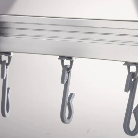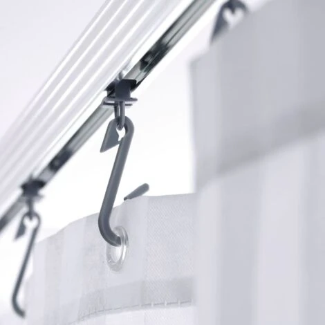 Questo binario per tende da doccia è robusto e mantiene la sua struttura lineare grazie al supporto da soffitto incluso. Sono presenti inoltre in dotazione due sospensioni a soffitto accorciate (lunghezza massima 55cm) per garantire il montaggio preciso e permanente di questo binario per tenda da doccia universale. Il binario può anche essere accorciato in qualsiasi momento, e non sono necessari anelli a cortina aggiuntivi in quanto i ganci sono già inclusi. Sono possibili le seguenti configurazioni: 160 x 70 cm, 90 x 90 cm, 90 x 90 x 90 cm.