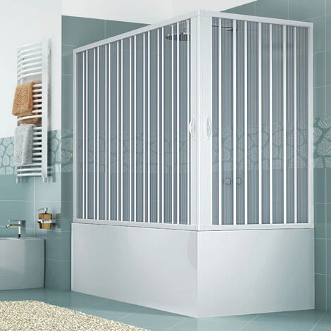 Frutto di una lavorazione completamente Made in Italy e grazie all’impiego dei materiali acrilici, possiamo ottenere un prodotto su misura con il miglior rapporto qualità-prezzo. L’acrilico è un materiale leggero che consente una rapida installazione e un’ottima robustezza. La parete sopravasca in acrilico è a soffietto e riducibile fino a 10 cm. La parete offre la massima apertura rendendo semplice l’accesso nella vasca. Le guide sono state ottimizzate per offrire la massima impermeabilità e il minimo accumulo di sporcizia. Profili superiori e inferiori e guide di scorrimento misurano 3,5 cm in sezione. Il box ha un’altezza di 150 cm.