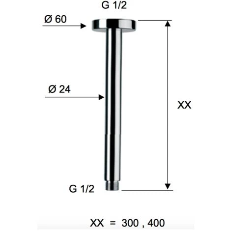 BRACCIO DOCCIA DA SOFFITTO serie Minimal, completamente in ottone cromato 50 cm