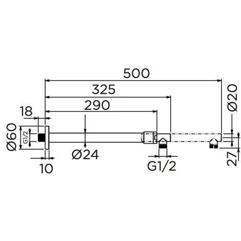 Braccio doccia in ottone cromato estensibile da 35 a 50 cm