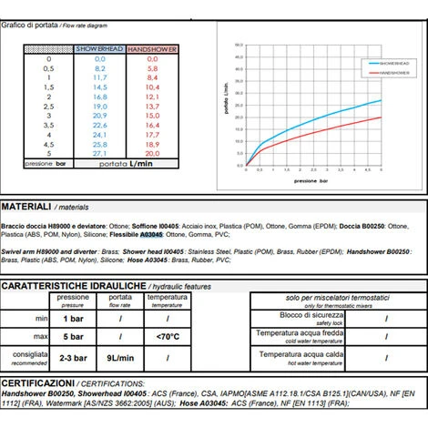 Portata acqua: min 9 L/min;