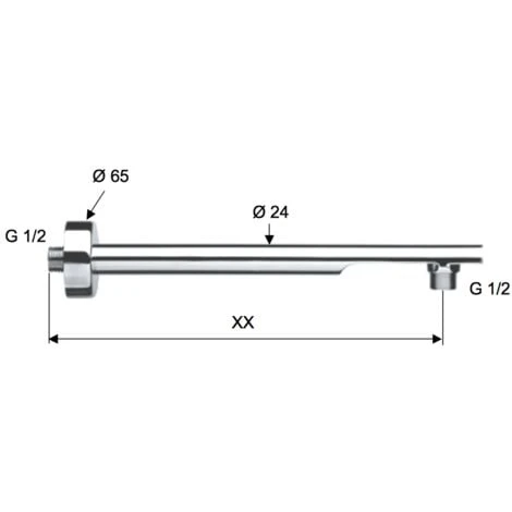 BRACCIO DOCCIA ”MINIMAL” IN OTTONE CROMATO 20 cm con rosetta