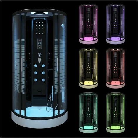 Cabina doccia idromassaggio 80X80X220cm con interno nero e porte in vetro trasparente.