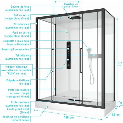 Il più prodotto: Con la sua struttura nera opaca, la gamma di cabine doccia di fabbrica 2 porterà uno stile e una tendenza molto industriale al tuo bagno.