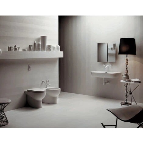 Vaso a terra filoparete salvaspazio della serie Nuvola di Ceramica Azzurra. Il wc in ceramica bianco lucido, cm. 55×35, con portata di scarico ottimale 3 lt. fissaggio incluso. Il water, avendo una profondit ridotta, molto utile se si hanno bagni di piccole dimensioni. Infatti consente una gestione ottimale degli spazi, garantendo sempre un’elevata funzionalit .