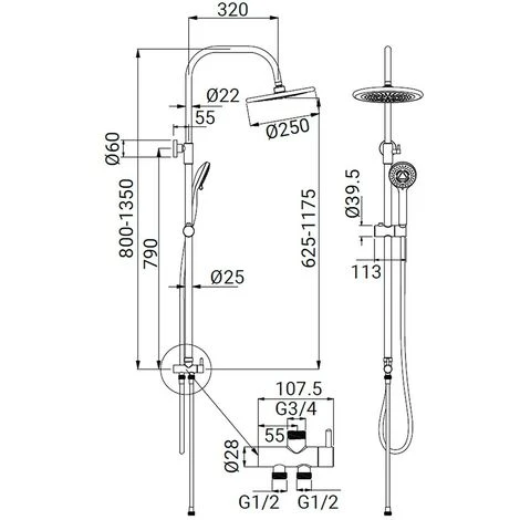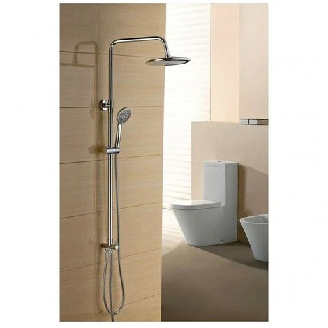 Realizzata principalmente in acciaio cromato, la struttura della colonna doccia si compone di soffione, deviatore e doccetta così da avere già tutto pronto per essere installato. Il soffione monogetto anticalcare da 25 cm di diametro è in resistente ABS, il comodo doccino ha 3 getti e un flessibile lungo 150 cm in metallo dalla doppia aggraffatura, mentre il deviatore a 2 vie è in ottone. L’asta della colonna doccia è inoltre estensibile in altezza da 80 a 135 cm.