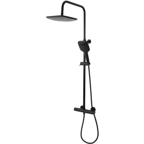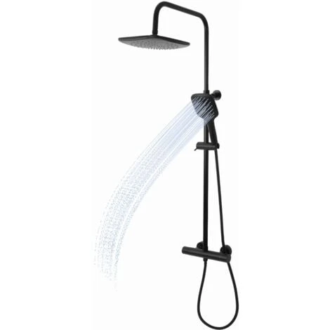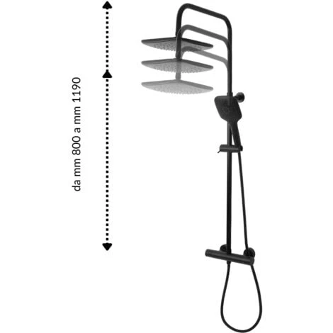 Colonna doccia attrezzata in ottone nero termostatica soffione e doccetta quadro