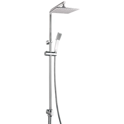 Elegante colonna doccia con struttura in ottone cromato lucido e soffione in ABS 20×20 con getti anticalcare.