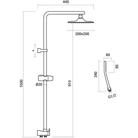 Colonna Doccia con soffione quadrato 20×20 e struttura in ottone