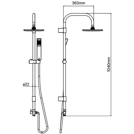 Pratica Colonna doccia realizzata in ottone cromato con soffione e doccino di forma squadrata. La colonna viene fornita completa di