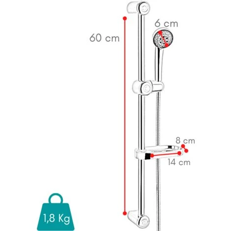 – x1 Colonna doccia senza miscelatore, saliscendi con doccetta 3 getti e portasapone