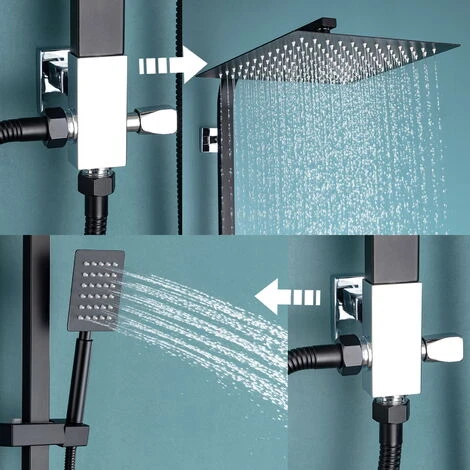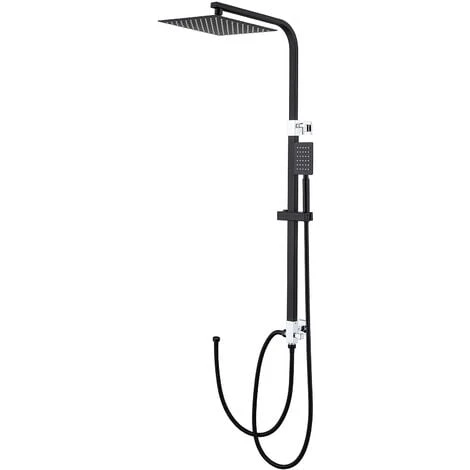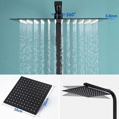 Auralum Colonne doccia nero senza rubinetto con doccia a pioggia 25 x 25 cm e doccetta quadrata, set doccia in ottone, asta manuale regolabile