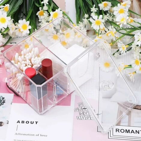 Scatola portaoggetti in acrilico trasparente con coperchio per cotton fioc , tamponi e pennelli