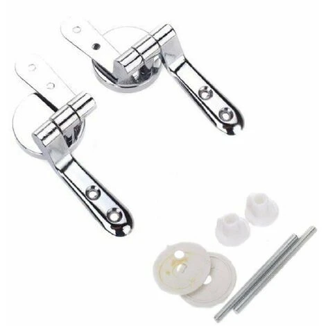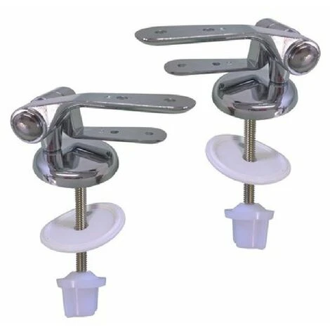 Coppia di cerniere universali in ottone cromato per coprivasi in legno MDF. Il prodotto è installabile su tutti i tipi di wc che hanno una forma universale.