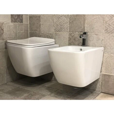New Edge Rimless, bellissimo set di sanitari sospesi in una nuova versione Ridotta. La gamma è completa di wc, bidet e coprivaso soft close con chiusura rallentata, cerniere in ottone.