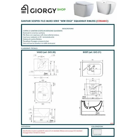 Caratteristica principale della nuova linea di sanitari sono le loro dimensioni contenute, più compatte e ridotte rispetto i classici sanitari (51.5 x 36.5 cm). Il set di sanitari che proponiamo è a marchio nostro (ceramica marchiata).