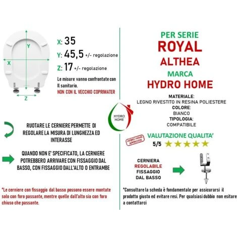 COSA VUOL DIRE COMPATIBILE?: Solitamente i copriwater compatibili si adattano a più di una serie di sanitari anche grazie alle cerniere regolabili che permettono di gestire lunghezza ed interasse. Questi prodotti si installano perfettamente sulla serie riportata in descrizione. Il connubio tra Compatibile e Top Quality è un ottima soluzione, non da meno del prodotto originale, ed è quella più scelta dai nostri clienti.