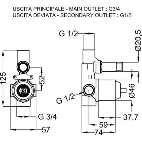 Corpo incasso universale Teorema GOODLIFE D=46mm D=30 con deviatore per miscelatore doccia