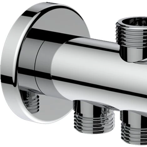 Deviatore di ricambio per colonna doccia Papete con codice SCACOL0061CR. L’articolo realizzato in ottone cromato lucido è dotato di rosetta coprimuro e attacchi universali da 3/4 x 1/2 x1/2 M.