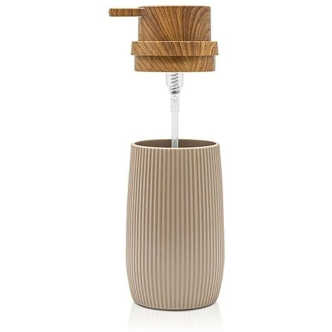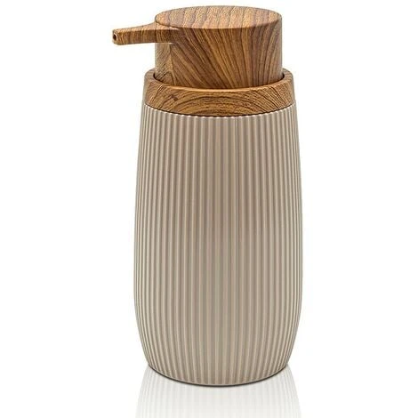 Il dispenser per sapone liquido Blob è un accessorio dal design moderno realizzato in plastica solida e resistente dalla finitura tortora con texture rigata. Ad arricchire ulteriormente il prodotto vi è poi il dettaglio effetto legno della pompa dosatrice, che dà al design un tocco esotico e mai banale, abbinabile anche agli stili di bagno più innovativi e inusuali.