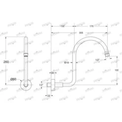 Braccio Per Soffione Doccia Quadrato In Ottone Cromato Completo Di Rosone – 35CM