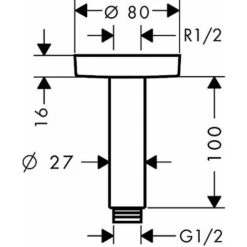 Hansgrohe Attacco A Soffitto A Misura Di Mano E 100 Mm, Cromo – 27467000