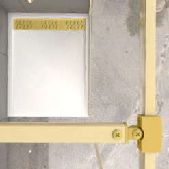 Parete Doccia 100x200cm Finitura Oro Spazzolato + Piatto Doccia Bianco 100x80x4cm
