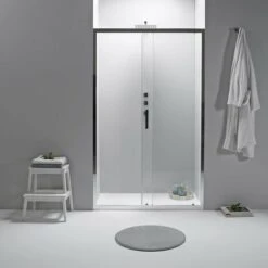 Porta Doccia Bianco Vetro Serigrafato H 185 Mod. Blanc 100 Cm