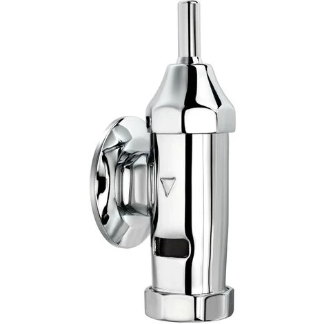 Valvola di scarico temporizzata a parete con corpo e ghiera in ottone cromato Presto 1000M. Dispositivo antisifone integrato. Pistone intercambiabile. Chiusura automatica: 7 ± 2s. Portata: 1,2 l/s con regolatore di portata automatico. ¾ entrata maschio. Senza rubinetto. Fornito con rondella, dado di raccordo di uscita e snodo americano per tubo Ø 28 mm. Dispositivo antisifone integrato. Pressione dinamica minima richiesta all’ingresso della valvola di flussaggio: 0,900 bar. Pistone intercambiabile che comprende l’intero meccanismo del flusher. Apertura tramite maniglia con snodo sferico. Corpo e finiture in ottone cromato, parti interne in materiali resistenti alla corrosione e ai depositi calcarei. Peso lordo: 0,530 Kg. Livello di rumorosità di categoria II secondo la normativa vigente EN 200. Senza rubinetto