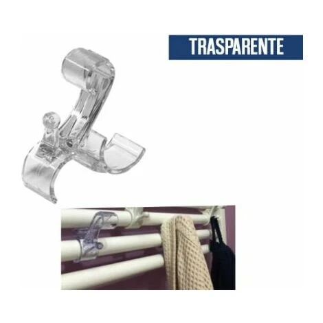 Gancio per termoarredo Magic-Hook in ABS, montaggio a scatto, ideale per termoarredo per tutti i diametri di tubo, non graffia.