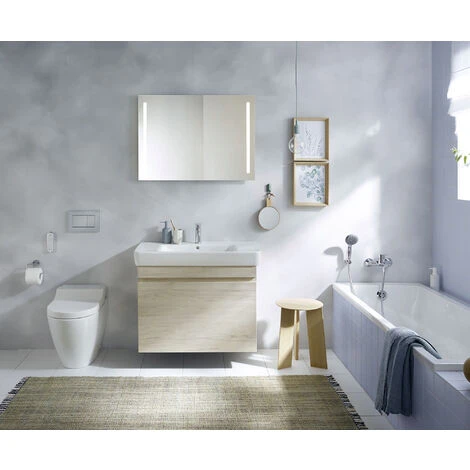 - Allacciamento alla rete con cavo flessibile a tre conduttori con guaina, nascosto sul lato destro dietro la ceramica del WC