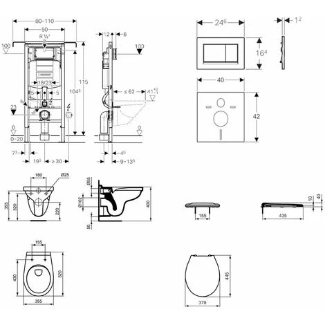 - profondità della piastra di base adatta per l’installazione nelle sezioni a U UW 50 e UW 75 e nei profili di sistema Geberit Duofix