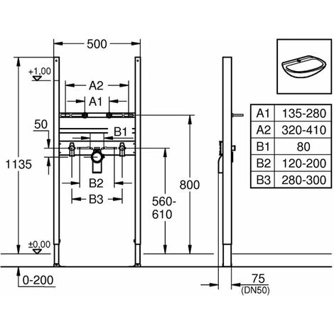 - attacchi di fissaggio filettati M 10, con fissaggio per sanitario