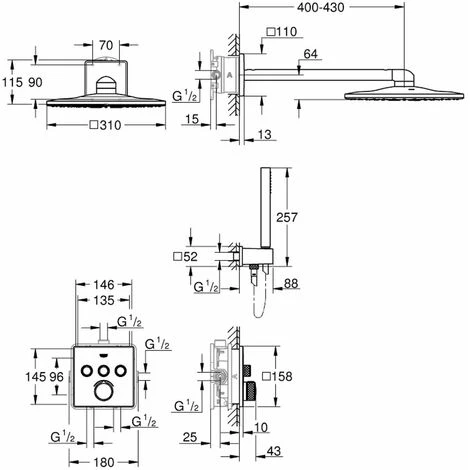 - dimensioni soffione doccia 310 x 310 mm