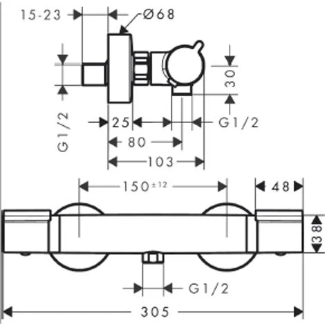 hansgrohe Versostat² Miscelatore termostatico doccia esterno, cromo, 15368000