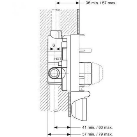 Per miscelatore monocomando da incasso. Profondita’ min 57 mm e variabilita’ di 22 mm. Dotato di cartuccia EKO 47 mm, con monocomando per il risparmio dell’acqua, sistema di controllo della temperatura dell’acqua calda e angolo di funzionamento a 120°. Capacita’ di portata: 20 l/min a 3 bar.
